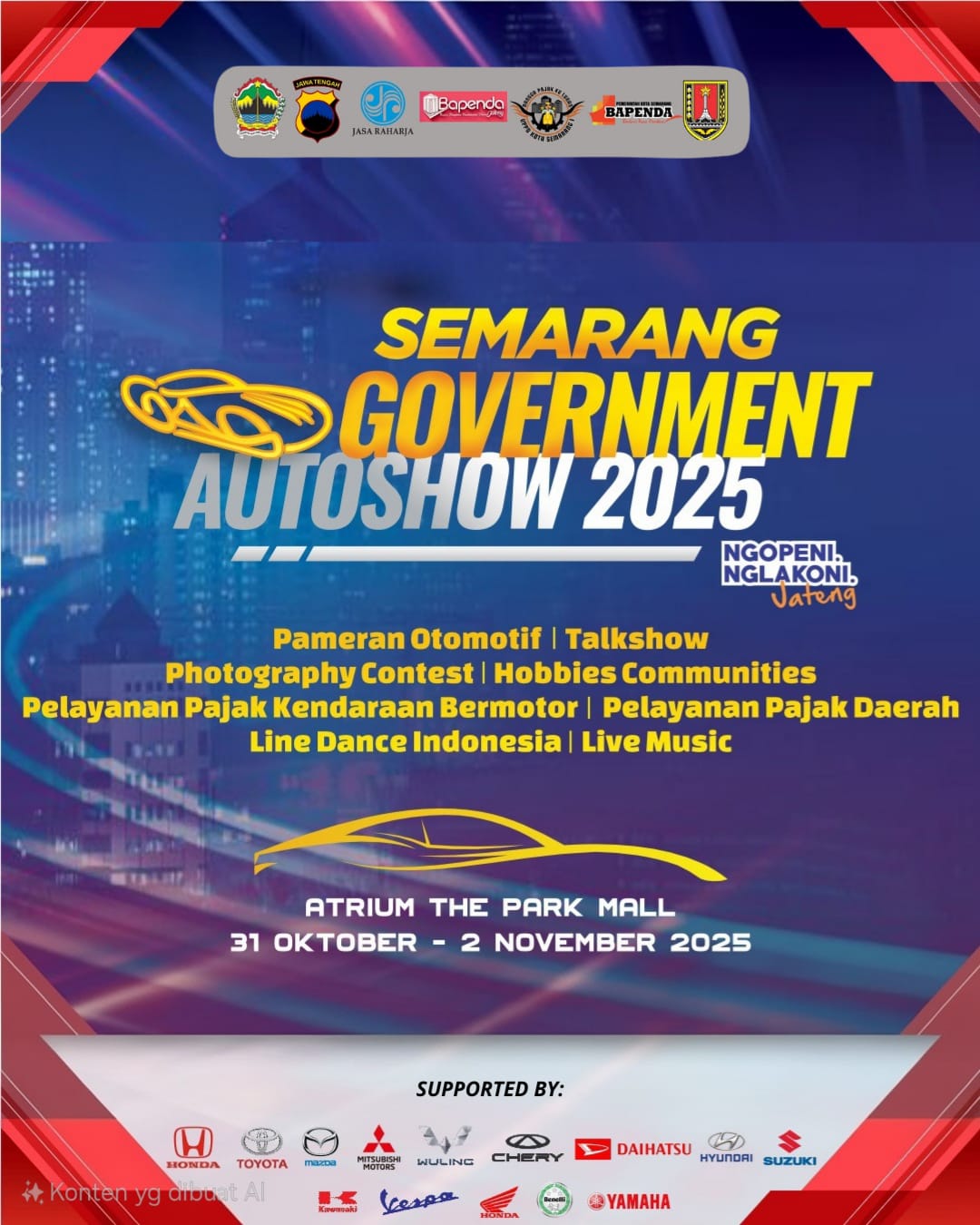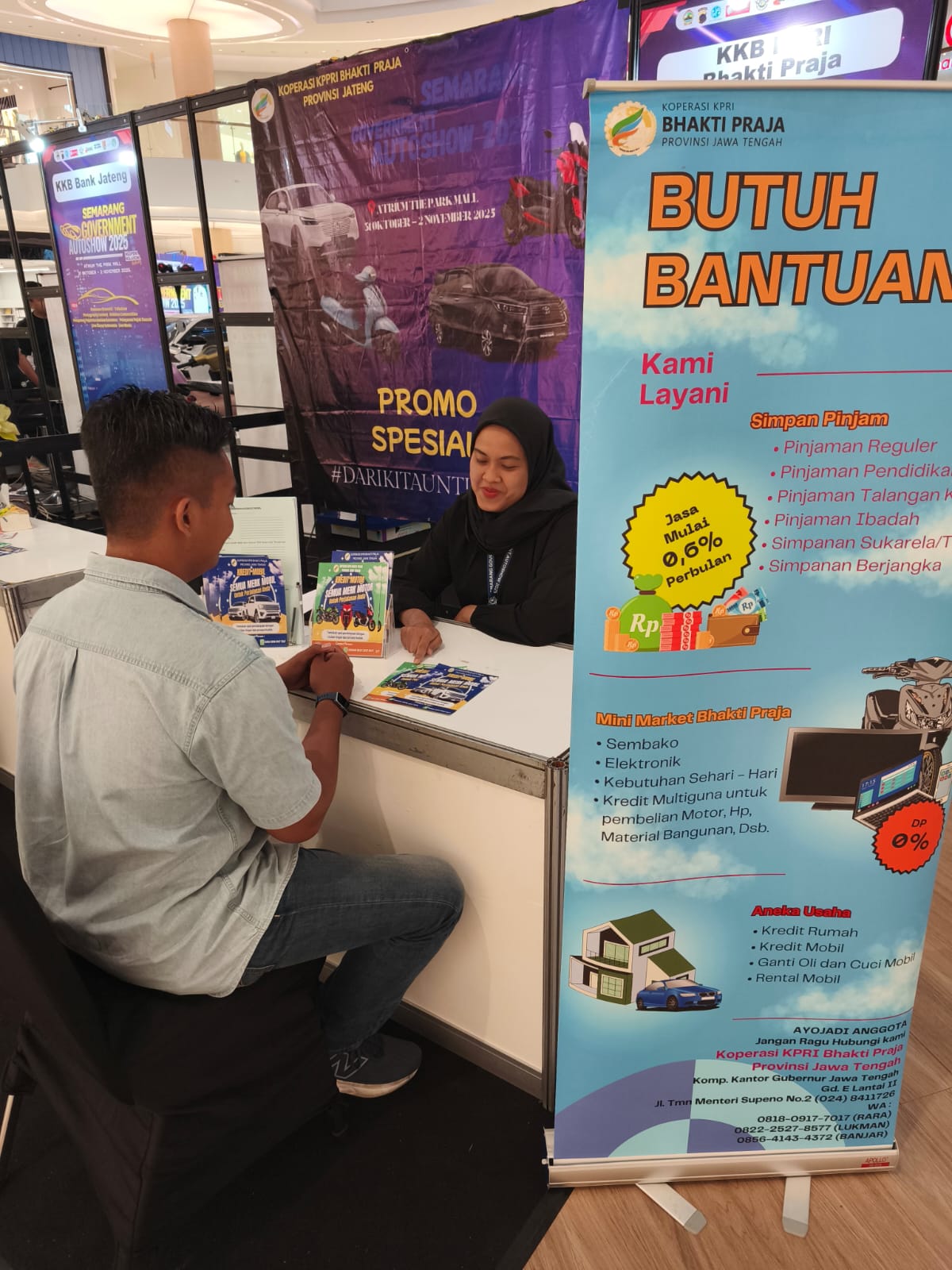 Semarang, 31 Oktober - 2 November 2025 β Dalam upaya mendukung inovasi dan kebijakan Program Bapenda Provinsi Jateng Series di Kabupaten/Kota Se-Jawa Tengah dengan pengampu masing-masing UPPD di Bidang Otomotif Ramah Lingkungan, Koperasi KPRI Bhakti Praja Provinsi Jawa Tengah turut berpartisipasi dalam kegiatan Semarang Government AutoShow 2025 yang diselenggarakan di Atrium The Park Mall, Semarang Jateng. Acara ini menjadi wadah kolaborasi antara instansi pemerintah, pelaku industri otomotif, serta masyarakat dalam memperkenalkan berbagai inovasi kendaraan dinas yang efisien dan berteknologi hijau serta produk-produk dari masing-masing UPPD.