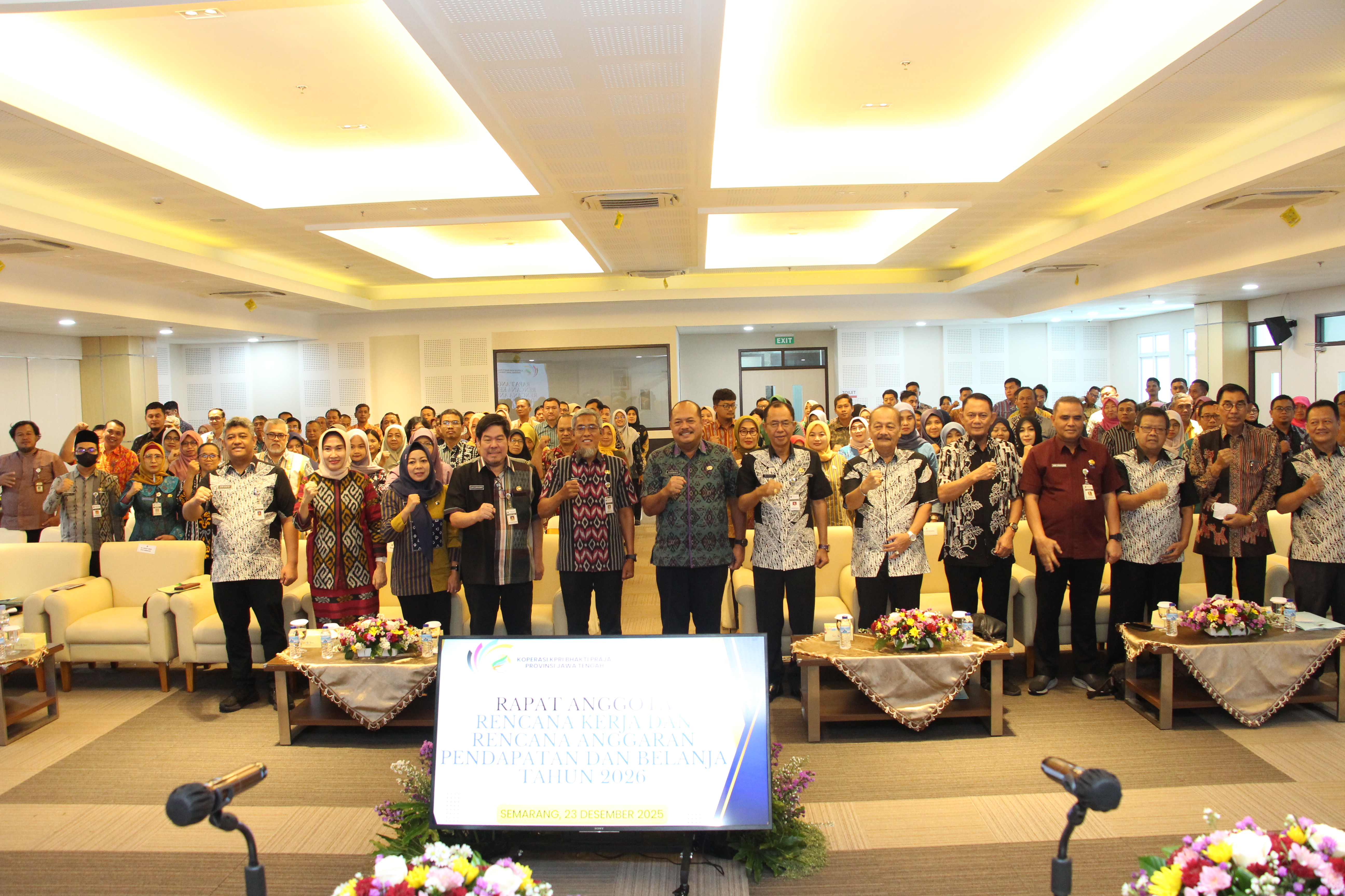 Koperasi KPRI Bhakti Praja Provinsi Jateng melaksanakan RAPAT ANGGOTA RENCANA KERJA DAN RENCANA ANGGARAN PENDAPATAN DAN BELANJA TAHUN 2026 (RKAPB) yang dilaksanakan pada Semarang, Selasa 23 Desember 2025 di Gedung Merah Putih, Ruang Rapat BPKAD Provinsi Jateng Lantai 10. RKAPB Tahun 2026 adalah rencana RKAPB tahun keempat. Tujuan Rapat Anggota RKAPB Tahun 2026 adalah untuk membahas & menetapkan Rencana kerja & Anggaran Pendapatan Belanja serta Rencana Kerja Pengawasan Koperasi KPRI Bhakti Praja Provinsi Jateng Tahun 2026. Di dalam RKAPB 2026 dihadiri oleh yang mewakili Anggota dari Instansi atau SKPD Pemerintah Provinsi Jateng. Di dalam Rapat Anggota RKAPB Tahun 2026 dibuka oleh Sekda Provinsi Jateng yaitu Bapak Soemarno,SE.,MM. yang dimana beliau menyampaikan bahwa koperasi sudah ada di zaman beliau kecil & beliau menyampaikan bahwa Koperasi KPRI Bhakti Praja Provinsi Jateng sangat-sangat sehat & beliau berharap semoga Koperasi KPRI Bhakti Praja Provinsi Jateng tambah maju dan tambah sejahtera. Di dalam Rapat Anggota RKAPB Tahun 2026 terdapat dorprize untuk anggota dengan dorprize tersebut yaitu 2 Sepeda Motor, 2 Laptop, 2 Mesin Cuci, 3 TV, 3 Hp, 8 Magicom